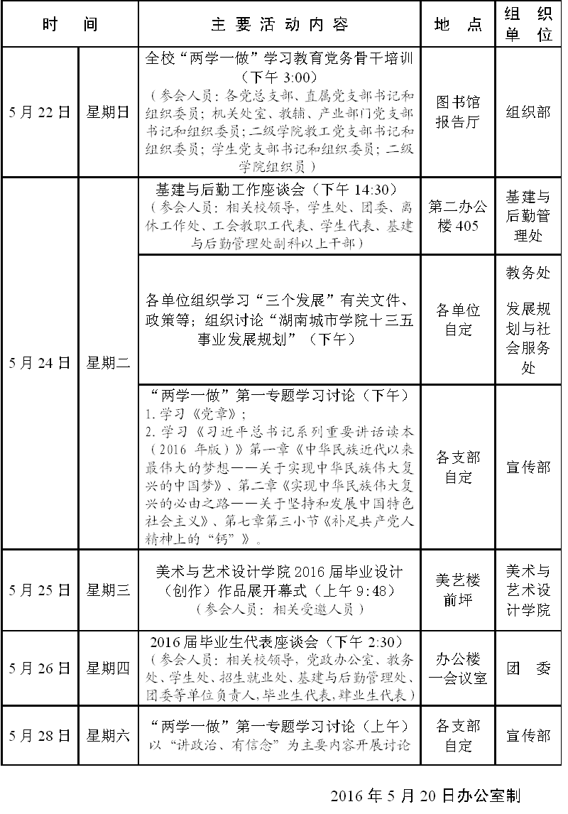 第十五周主要会议安排表