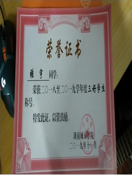 校三好学生,获得米兰平台第十一届数学竞赛二等奖,机械与电气工程学院合唱比赛团体第一名的荣誉。