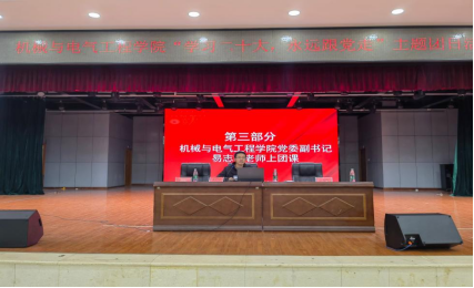 2022年11月28日晚19点我院在新食堂三楼活动中心开展党在我心中,永远跟党走主题团课,本次团课由机械与电气工程学院党委副书记易志明授课,我院团委学生会全体学生干部、21级和22级全体班长及团支书共同参与。